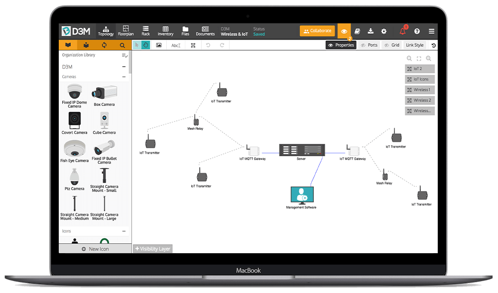 From IoT transmitters to wireless access points to iBeacons, D3M is pre-loaded with all the icons to build a lifelike network diagram.